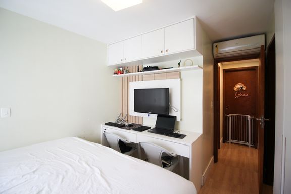Apartamento reformado com 55m² muito bem distribuídos, totalmente reformado e pronto para morar. São 2 dormitórios, sendo um deles com espaço office integrado — perfeito para quem precisa de funcionalidade no dia a dia. Conta com 2 banheiros, cozinha independente com área de serviços e marcenaria planejada que otimiza cada ambiente. Sala com ar-condicionado já instalado, garantindo conforto imediato. 1 vaga de garagem determinada. Produto redondo: entra e mora, sem dor de cabeça.