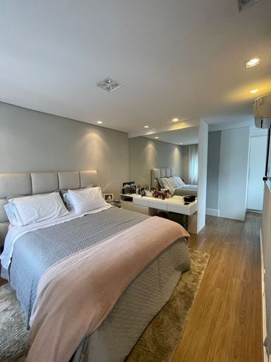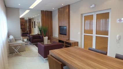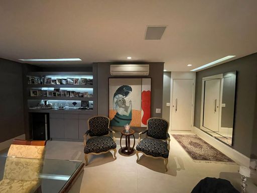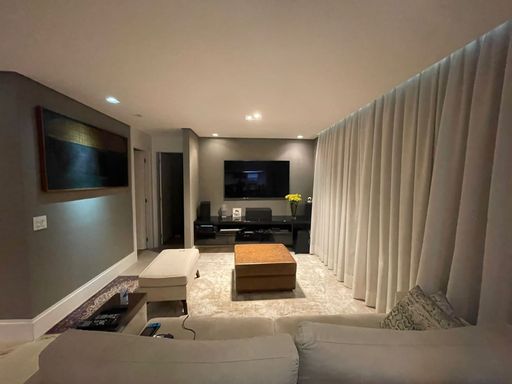 Apartamento de alto padrão, em andar alto, 130m2 de área útil, totalmente reformado e mobiliado, com varanda gourmet e projeto de design contemporâneo. São 3 dormitórios, sendo 1 suíte, 1 escritório, além de sala ampla com 2 ambientes integrados. Possui móveis planejados em todos os ambientes. Está voltado para o lado oposto à Marginal Pinheiros, garantindo mais tranquilidade e a agradável incidência do sol da tarde. Possui 2 vagas de garagem.