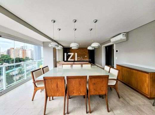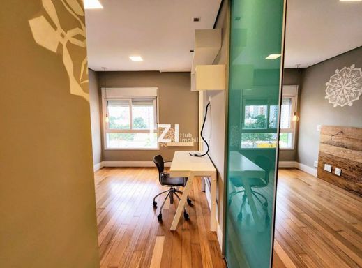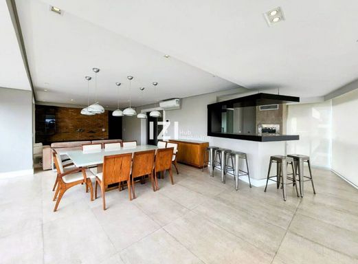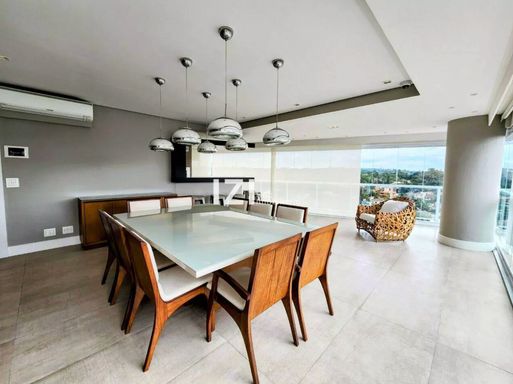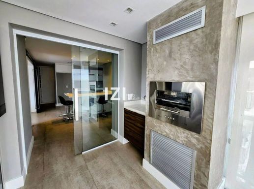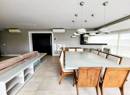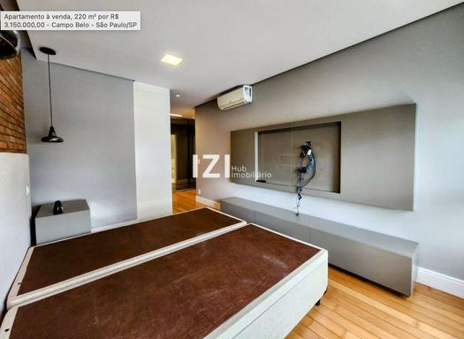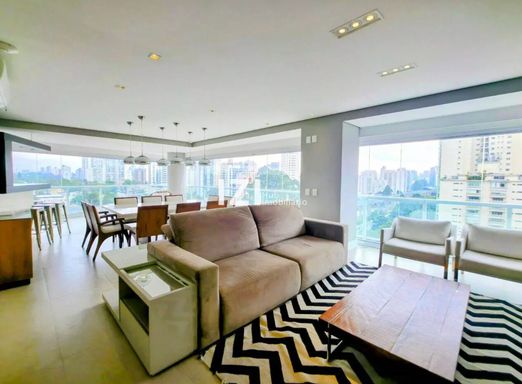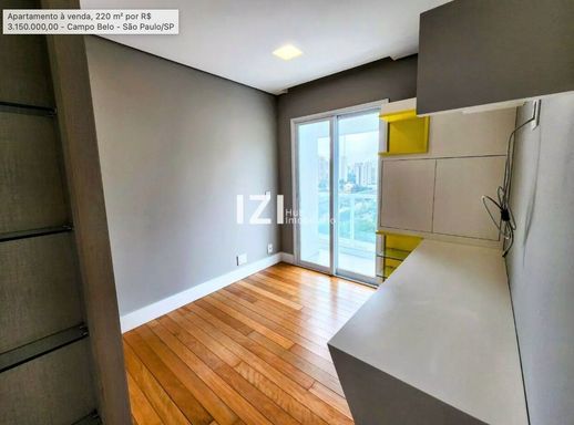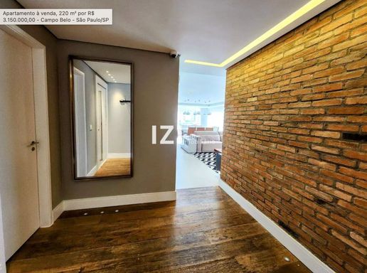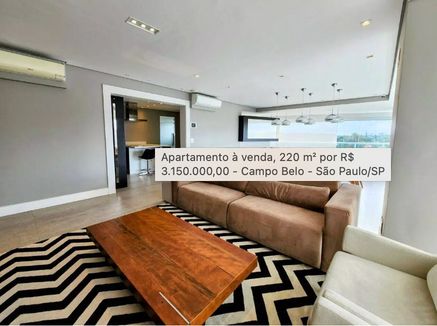 Apartamento de alto padrão com 220 m² de área útil, com 4 suítes e 3 vagas, totalmente mobiliado e com móveis planejados, ideal para quem busca conforto, tecnologia e design contemporâneo no Campo Belo, São Paulo. O living amplo integra sala de estar, jantar e home theater, conectado à varanda gourmet com fechamento em vidro e persianas motorizadas, perfeita para receber com charme e praticidade.