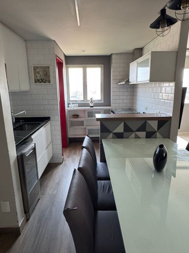 Apartamento reformado de 109m², com planta funcional e bem distribuída. São 3 dormitórios, sendo 1 suíte, além de um lavabo que garante praticidade ao dia a dia. A cozinha americana integrada proporciona modernidade e amplitude ao espaço social, conectando-se à sala de estar. Conta ainda com área de serviços independente e 1 vaga de garagem.
