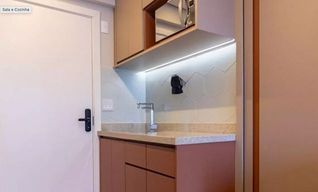 Apartamento com 27m2, 1 suíte, varanda, andar alto, mobiliado e decorado, com cozinha completa, lavadora, banheiro com box, projeto arrojado, super iluminado, vista livre.
