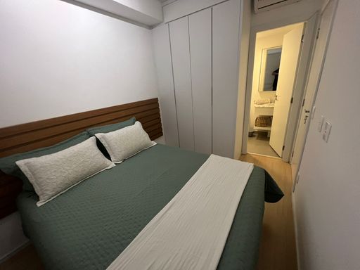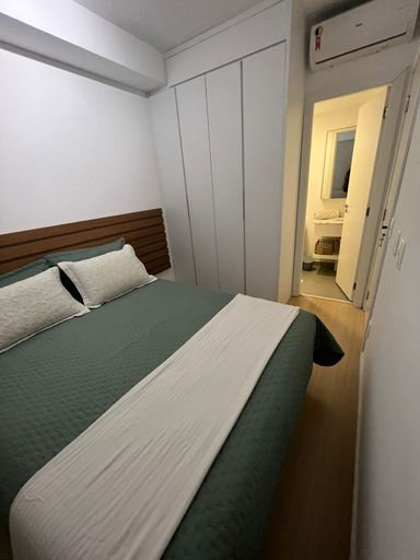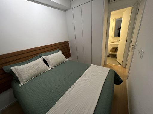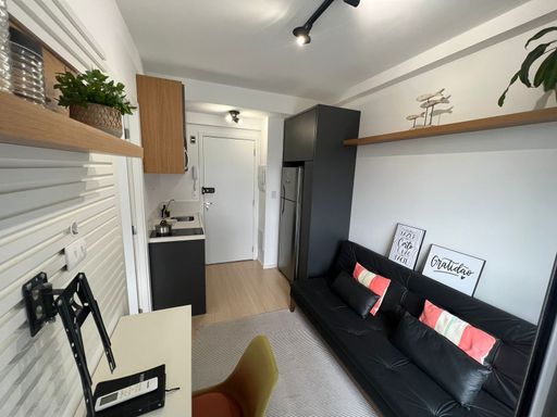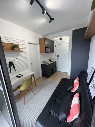 Apartamento com 27m2, 1 suíte, varanda, andar alto, mobiliado e decorado, com cozinha completa, lavadora, banheiro com box, projeto arrojado, super iluminado, vista livre.