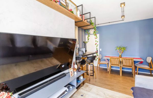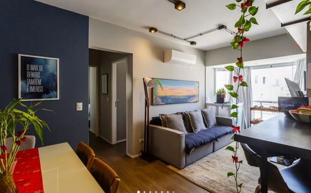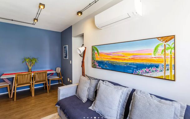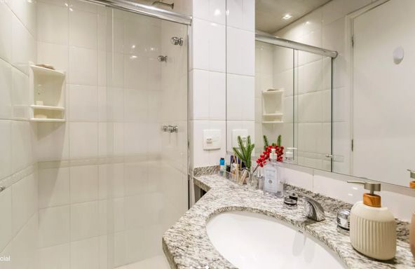 Apartamento reformado com 57m² de área útil, 2 dormitório, sendo 1 suíte, lavabo, cozinha americana, área de serviços com aquecedor a gás de passagem (atende os chuveiros), 1 vaga livre, varanda integrada fechada com vidro e janela de piso-teto, A/C na sala e na suíte, ótima luminosidade e vista para a piscina. Ventilação natural em todos os ambientes, varanda integrada envidraçada. Imóvel pronto para morar: reformado, mobiliado, com eletrodomésticos novos.