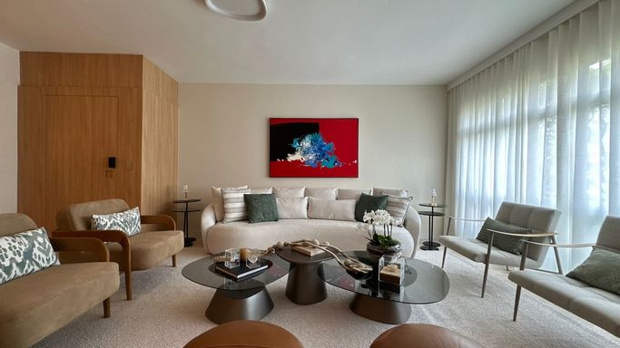 Condomínio com guarita blindada, segurança 24h, hall neoclássico com pé direito triplo, amplos jardins, salão de festas e academia. Prédio recuado e silencioso numa rua arborizada e tranquila.
