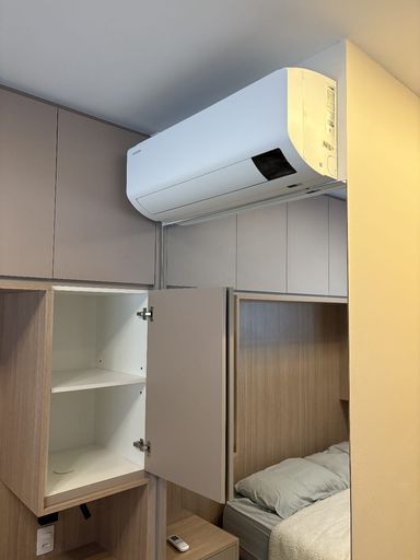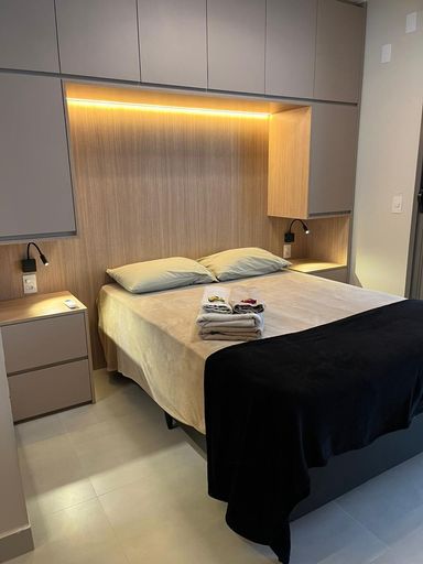 • 1 dormitório com cama, armários planejados, ar-condicionado