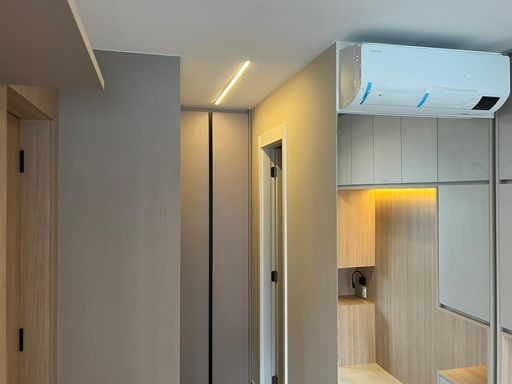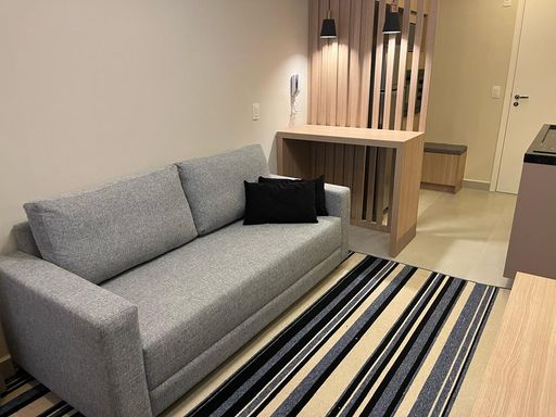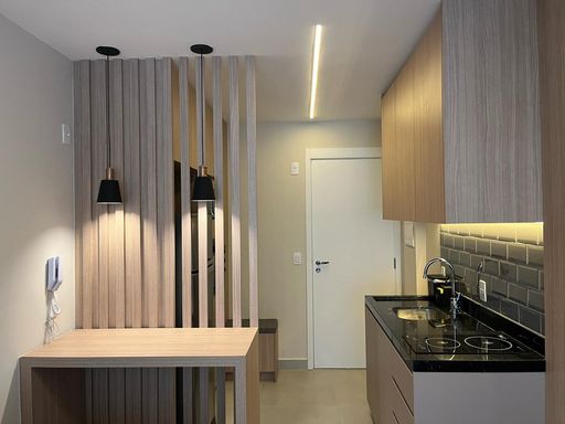 Este elegante apartamento de 44m² vai além do compacto: é funcional, acolhedor e 100% mobiliado com marcenaria nova e acabamentos de alto padrão. Diferente de um studio, o projeto distribui bem os ambientes, garantindo privacidade e conforto.