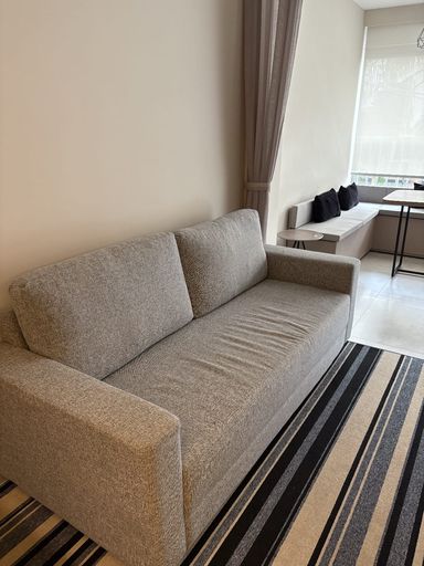 • Sala com ar-condicionado, sofá e marcenaria inteligente