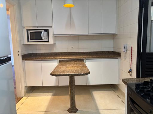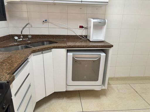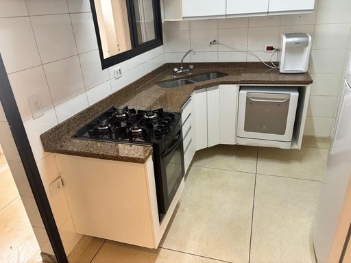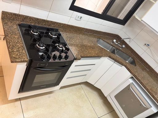 A cozinha é equipada com cooktop, forno, micro-ondas, geladeira novos e filtro de água. Área de serviço grande, com depósito, lavanderia, aquecedor a gás e banheiro de apoio. Gás individualizado.